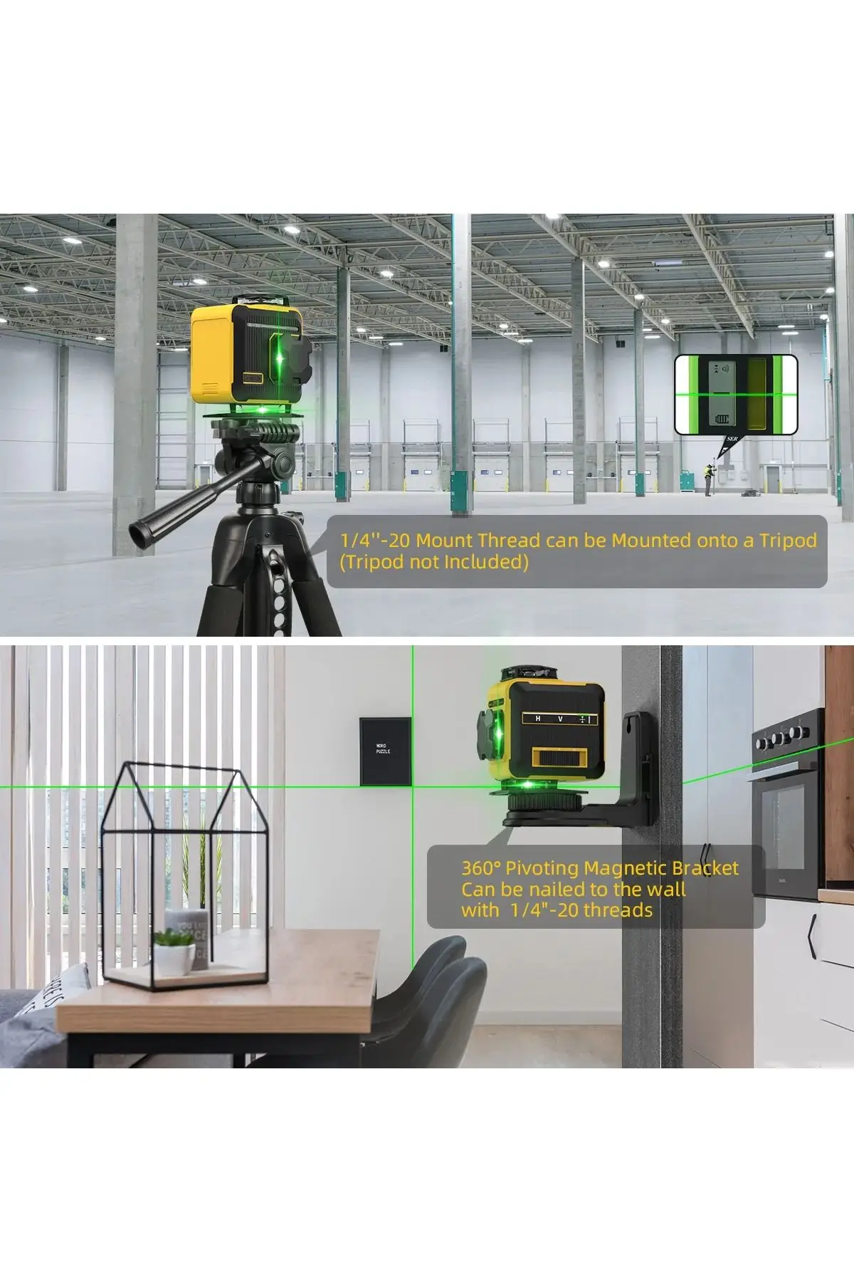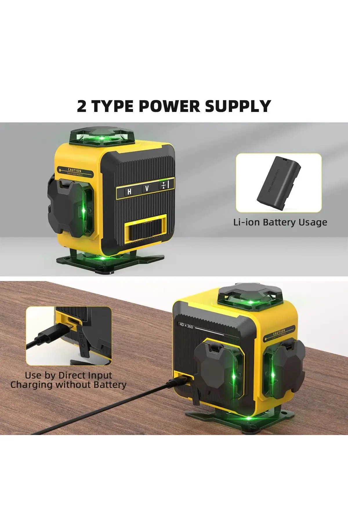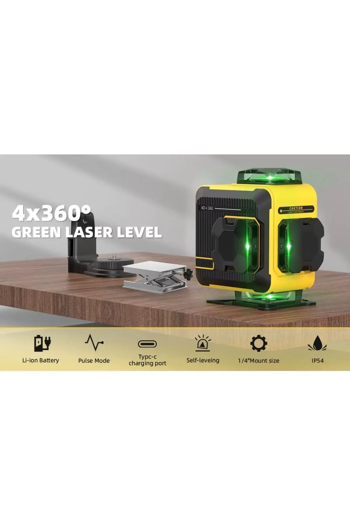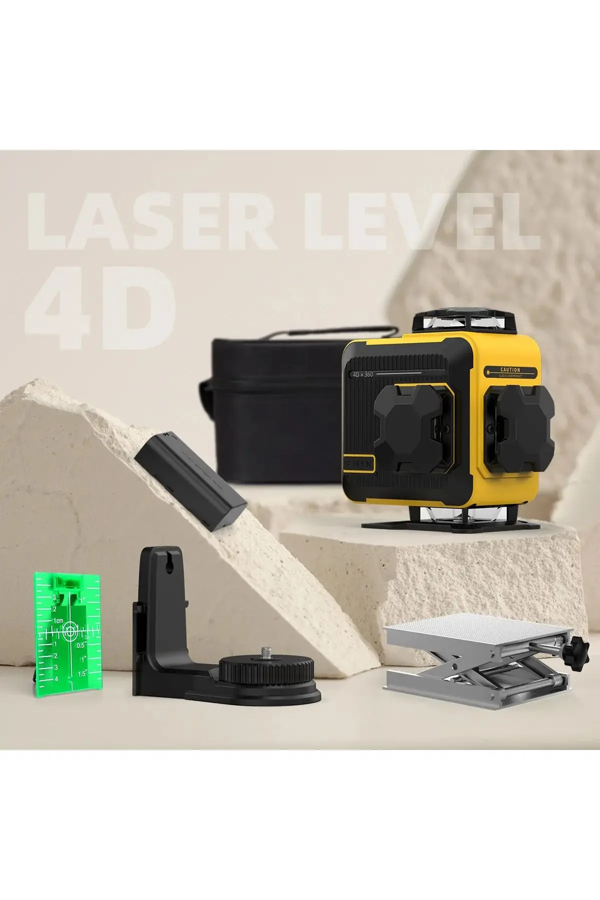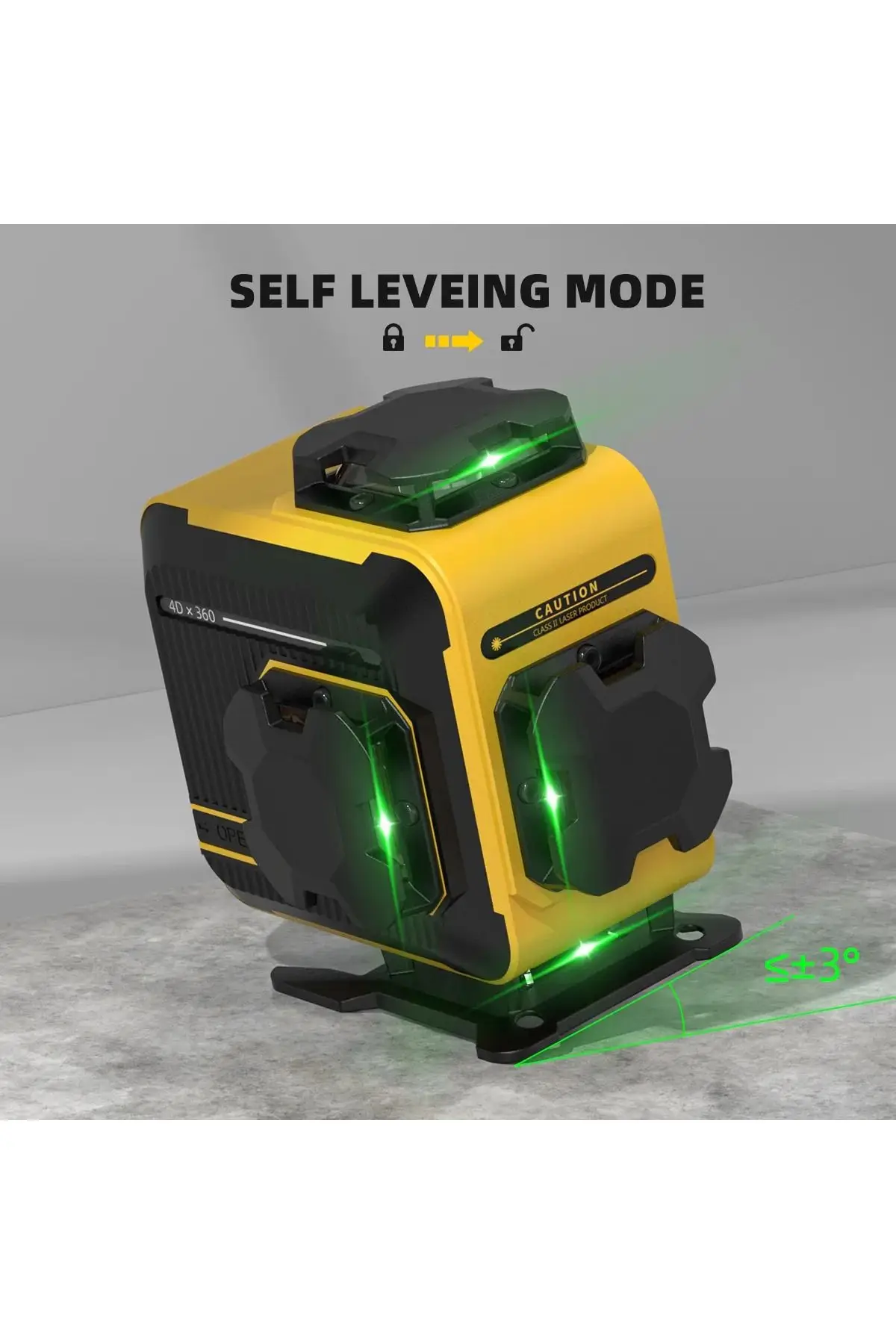 4 adet 360° lazer düzlemi sayesinde odanın tüm yönlerine tam kapsama sağlar (2 yatay + 2 dikey).